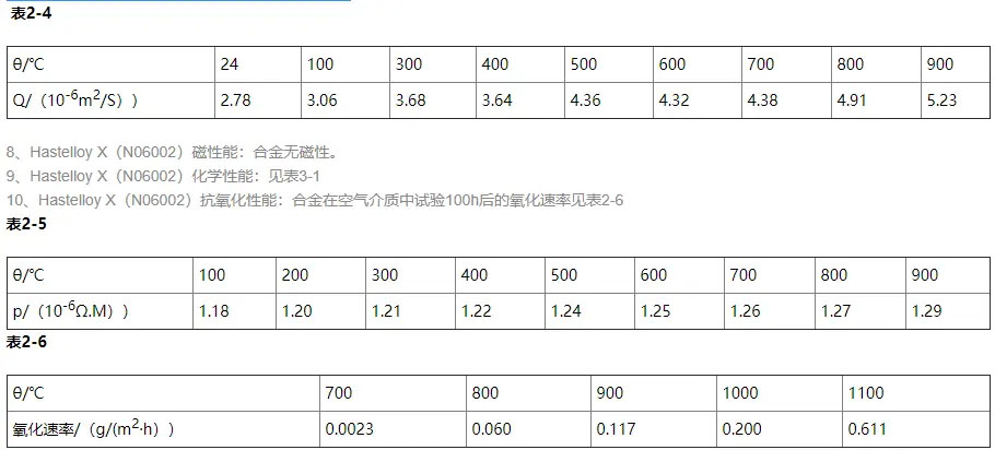 7、Hastelloy X(N06002)電性能:電阻率見表2-5