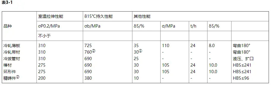 三、Hastelloy X(N06002)力學性能:HastelloyX技術標準規定的不同品種的力學性能見表3-1
