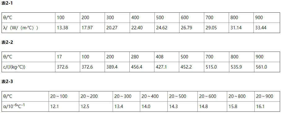 4、Hastelloy X(N06002)合金線膨脹系數:見表2-3