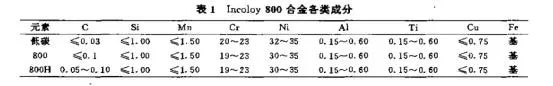 ncoloy 800合金屬于鐵—鎳一鉻合金,具有良好的耐腐蝕性能和抗氧化性能,在常溫和高溫下都有高的抗張強度和高的蠕變破斷強度。廣泛應用于鍋爐設備、水蒸汽高塔設備的壓氣管和合成氨輸出壓力管以及家庭炊具等。已發展成為一個系列Incoloy 800合金,主要分類由表1給出。