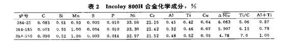 (4.2) 控制Ti/C=5~7,(Al+Ti)含量=0.8~1.0%,且低A1高Ti,800合金可獲得最佳