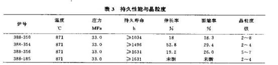 在我們的實驗中(見表3)也完全證實Incoloy 800H合金晶粒度在2~5級晶粒度下蠕變壽命(應力33MPa)≥1000h。