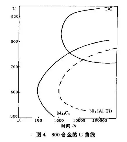 (4.4) 相[Ni₃(A1,Ti)]是800合金的主強化相,它在600~650℃下析出速度快,在800℃以下都較穩定。